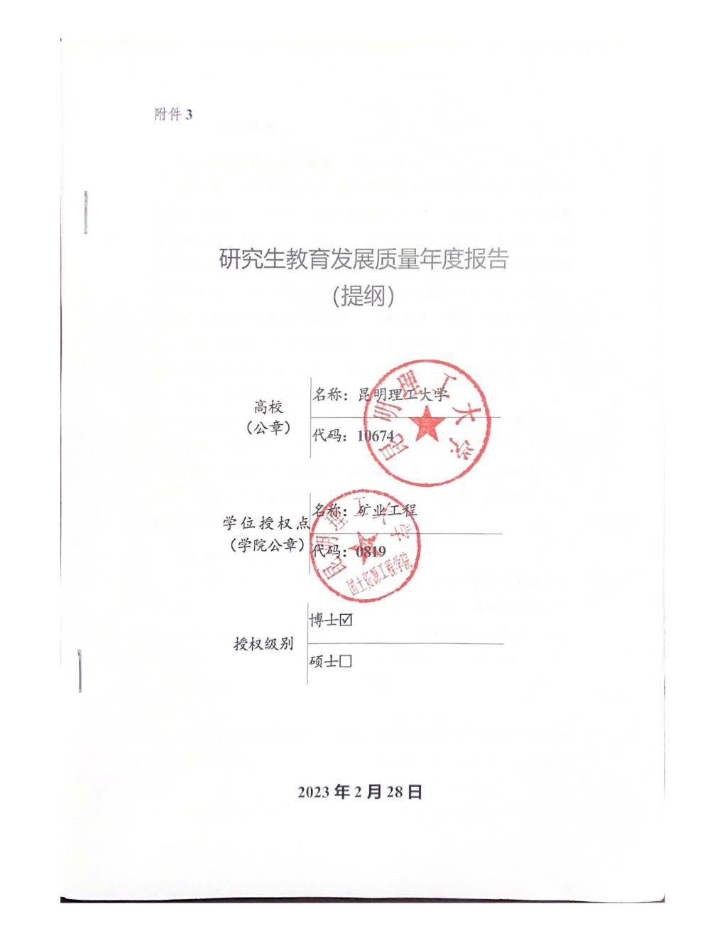 (3)加强研究生创新能力培养。坚持研究生培养与科研任务相结合,实行弹性化培养管理,着力提高研究生原始创新能力。激励学生参与各类学科竞赛,丰富社会实践和生产实践内涵,有助于在校研究生更新观念,吸收新的思想与知识,有效提高综合素质和实践能力,真正提高研究生培养质量。2022年度,研究生以第一作者在国内外学科顶级期刊和其他高水平、高质量期刊上发表论文68篇,在国内矿业工程学科研究生论文发表数量和质量上均处于较高水平;以第一或第二发明人授权国内发明专利29件。获校优秀学术博士学位论文4 篇,校优秀学术硕士学位论文4 篇,校优秀专业硕士学位论文8 篇;推荐云南省优秀博士学位论文4篇、优秀专业硕士学位论文4篇。在第八届中国国际“互联网+”大学生创新创业大赛中获省级金奖2项,银奖2项。10人获研究生国家奖学金,13人获研究生省政府奖学金。