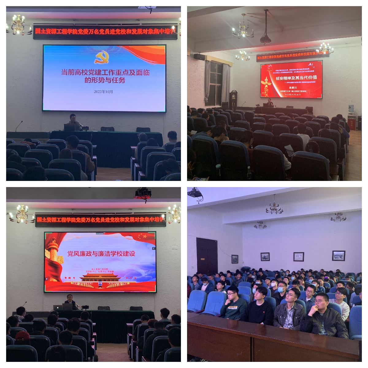 此次培训采取线下(国资一会现场学习)与线上(腾讯会议直播)相结合方式,由学院党委领导分别从《当前高校党建工作重点及面临的形势与任务》《延安精神及其当代价值 》《新时期安全生产与应急管理》《党风廉政与廉洁学校建设》等十余个专题进行授课,为全院800余名师生党员和9名发展对象提供了高质量的培训。