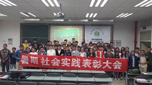 大会快接近尾声,苏梅,张宗国,赵军学,王扬成等人也对实践做出总结。最后由杨青学姐对大会总结,精彩的演讲过后,由田野主席颁发奖状,台下的每个人都是激动与羡慕的。当活动结束后,所有人站在一起合照,辛苦的实践让大家更加团结和睦。
