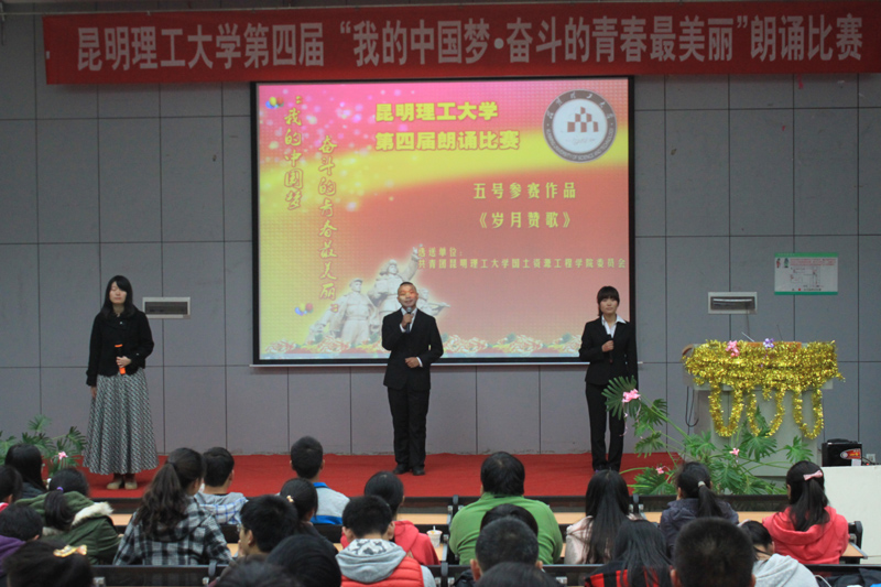 的朗诵由此开始。选手们声情并茂,激情昂扬,他们用自己洪亮的声音展现青春的朝气,用深情的表演传递自己对中国梦的理解。他们用抑扬顿挫、铿锵有力的朗诵声给人留下了深刻的印象,尤其是朗诵结束时那句激情澎湃的诵读“你若问我:谁主沉浮?我便骄傲的回答:我若不主,何来沉浮”更是赢得了全场雷鸣般的掌声。