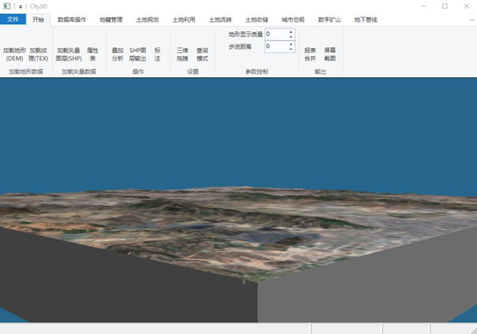 1)大规模三维地形管理及分析系统。以OpenGL为基本图形API,开发了大规模地形管理结构和算法,实现了对大尺度地形的高帧数带纹理实时渲染等。
