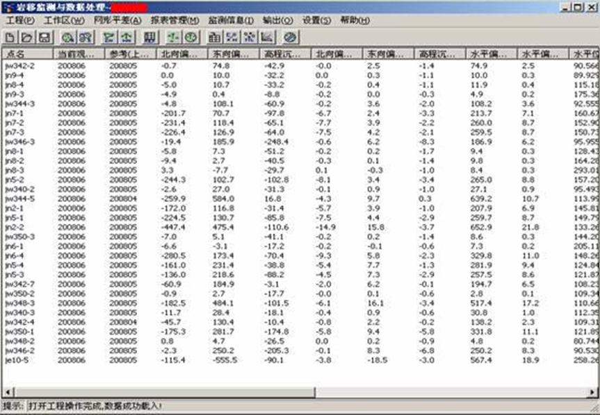 4)边坡岩移监测数据处理主要研究了GPS基线网的平差模型,采用了一种独特的测量平差模型,平差算法是核心,使用C/C++从底层进行了实现。