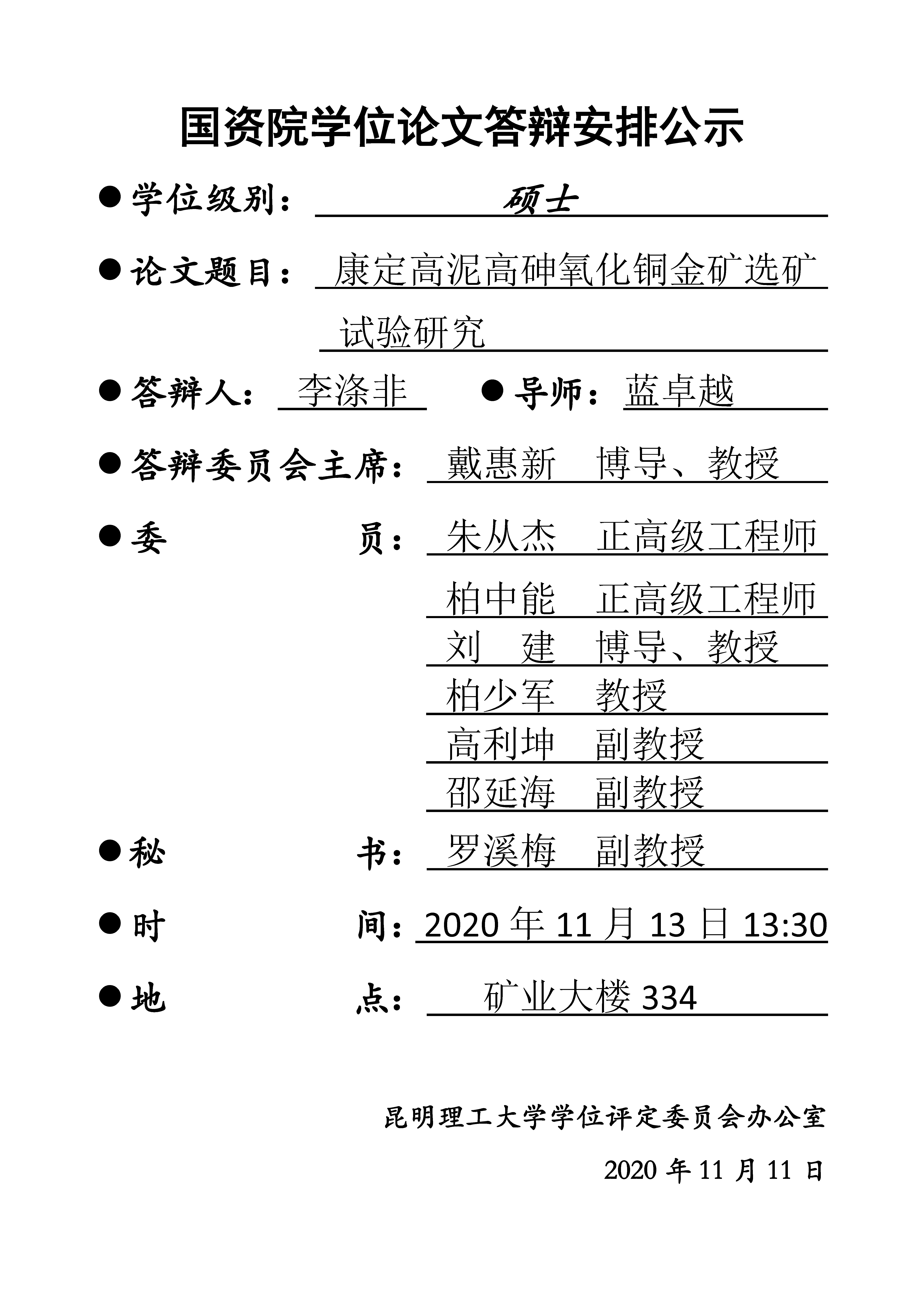 李涤非学位论文答辩安排公示