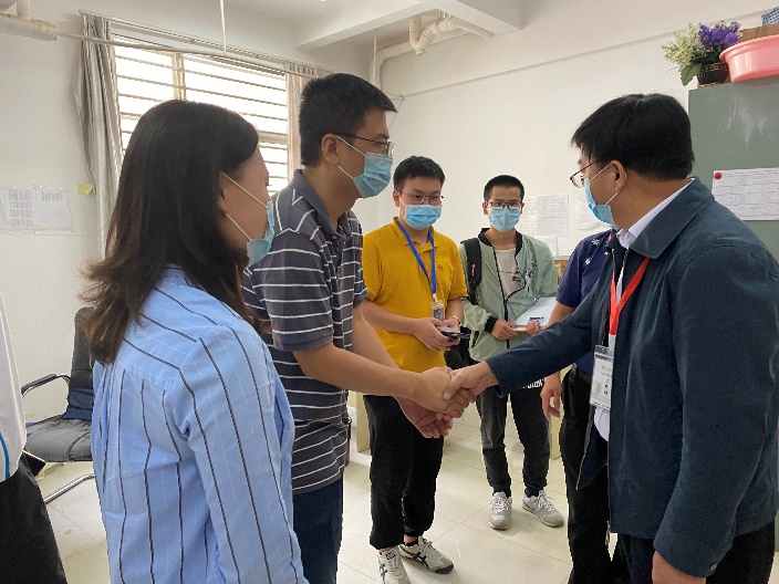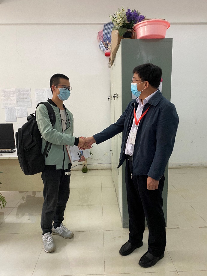 迎新现场,检查指导学院2021级新生迎新工作开展情况,并慰问看望迎新志愿者及工作人员。详细询问新生报到的情况,与新生进行亲切交流,对新生提出了殷切的期望。