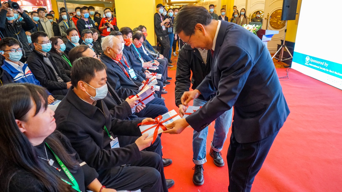 在发布会现场吴顺川教授向参会来宾赠送书籍。他在致辞中表示,新形态《岩石力学》教材的出版,有力的促进了岩石力学学科的发展,同时培养了大批研究人员,并对审稿专家何满潮院士和冯夏庭院士、编者及出版社表示感谢。