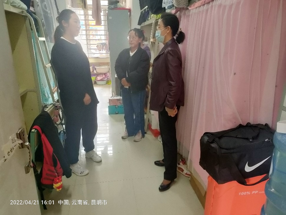 本科学生宿舍,学院辅导员老师一起参与走访。