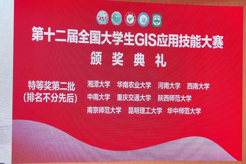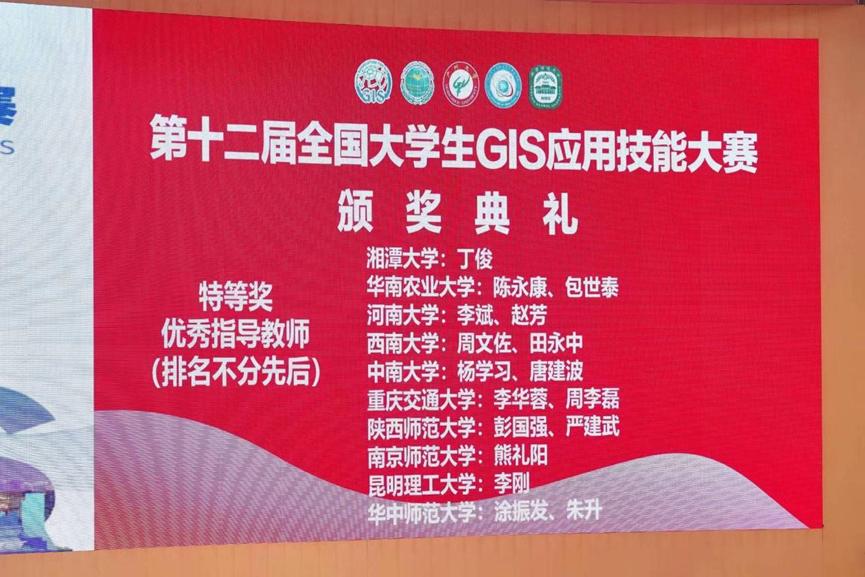 代表队,在李刚老师的指导下,于2023年12月13日,取得“第十二届全国大学生GIS应用技能大赛”特等奖的成绩。