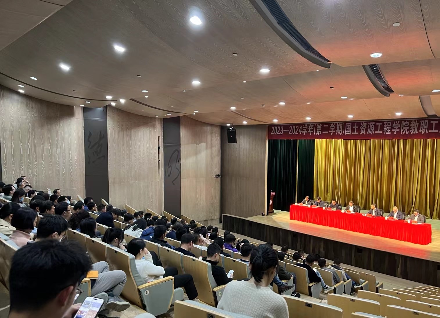 2023-2024学年第二学期教职工大会在伍集成会堂二楼报告厅顺利召开,学院全体教职工参加了此次会议。