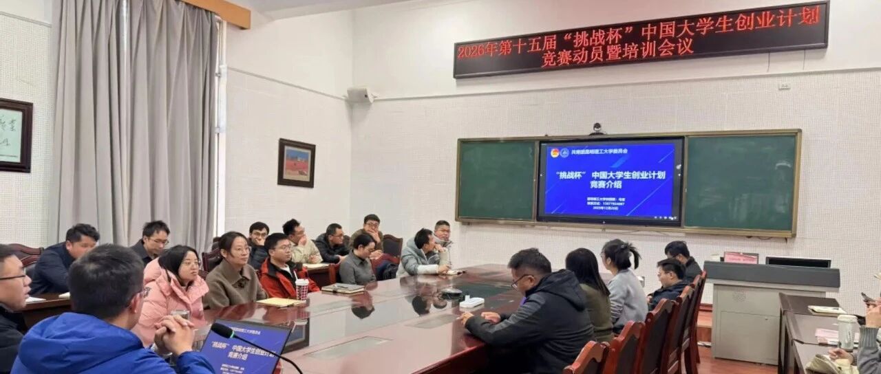 在国资楼第二会议室成功举办2026年第十五届"挑战杯"中国大学生创业计划竞赛动员暨培训会。会议旨在深化以赛育人理念,凝聚备赛力量,提升参赛作品质量与竞争力。学院党委副书记李雨健主持会议,校团委副书记马宝担任主讲,学院50余名青年教师参加。
