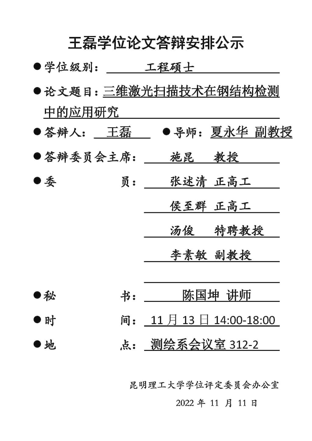 王磊学位论文答辩安排公示